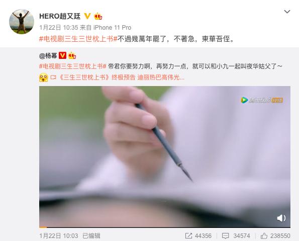 不过剧里没出现,剧外赵又廷还是给这部剧打call了,选在这个日子也很能安慰粉丝。