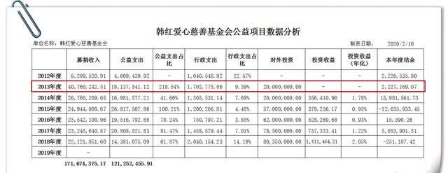随后大V在文章中晒出了韩红基金会从12年起到2018年公开的数据资产负债率显示净资产约为4000万,该微博大V质疑这些钱去哪了,
