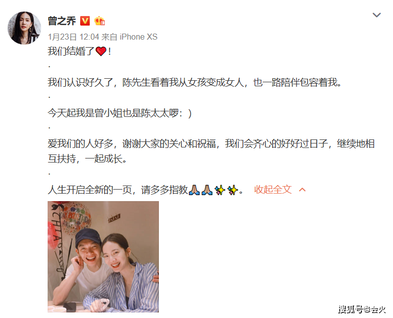 2月14日情人节,曾之乔在个人社交平台上大方秀恩爱,不仅晒出了和辰亦儒的合照,还发文告白,言语间都是甜蜜。