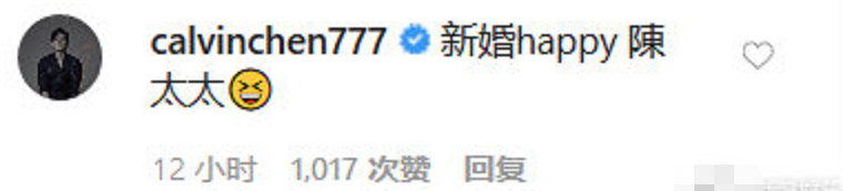 辰亦儒随后也在评论区回复:“新婚happy陈太太”,二人互动十分甜蜜。