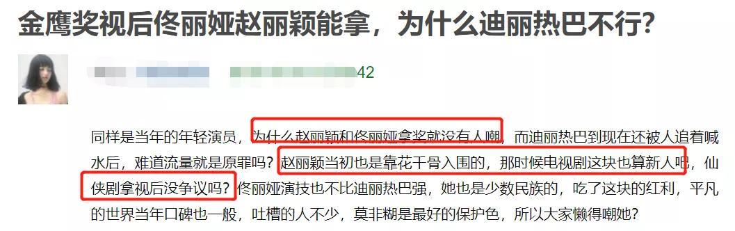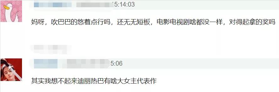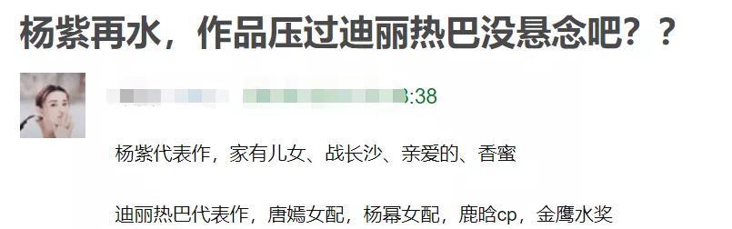 杨紫家逮住热巴缺少大女主爆剧,实绩空虚这点猛嘲,甚至开启自毁式攻击,表示就算杨紫再水也比热巴强,还把“水后”称呼升级成“水坝”,演技根本对不起拿的奖。