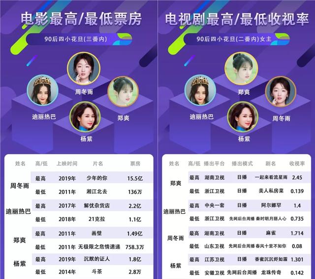 但最根源的原因还是资源竞争,不同于小生圈的泾渭分明,目前85花和90花,除了周冬雨突出重围,其他人都还在电视剧圈打转,演的剧类型也很单一,甚至连瓶颈都一模一样,都在向往正剧转型的同时守住原有市场。