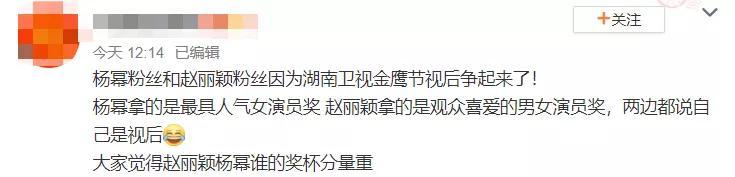 杨幂有水晶杯无金杯,赵丽颖有金杯无水晶杯,赵丽颖家站起来要打人,就是觉得拿了金杯的赵丽颖才是“视后”,你杨幂拿着水晶杯,可没有做“视后”的资格,根本就是混淆视听,水奖项。