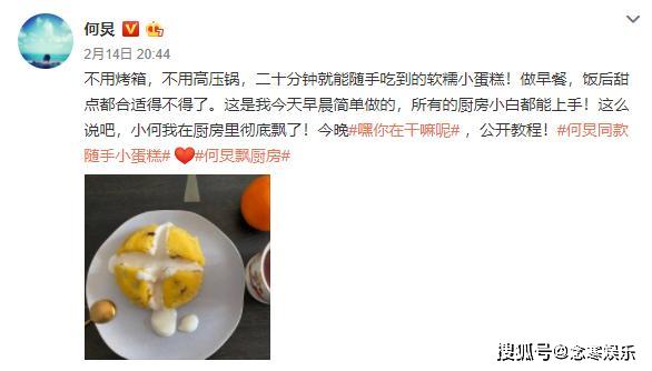 2月14日晚,著名主持人何炅通过微博分享了自制蛋糕攻略,还强调制作工序简单,时间只需二十分钟,就能够吃到软糯香甜的小蛋糕,不管是当早餐吃也好,还是饭后甜点都非常的合适。