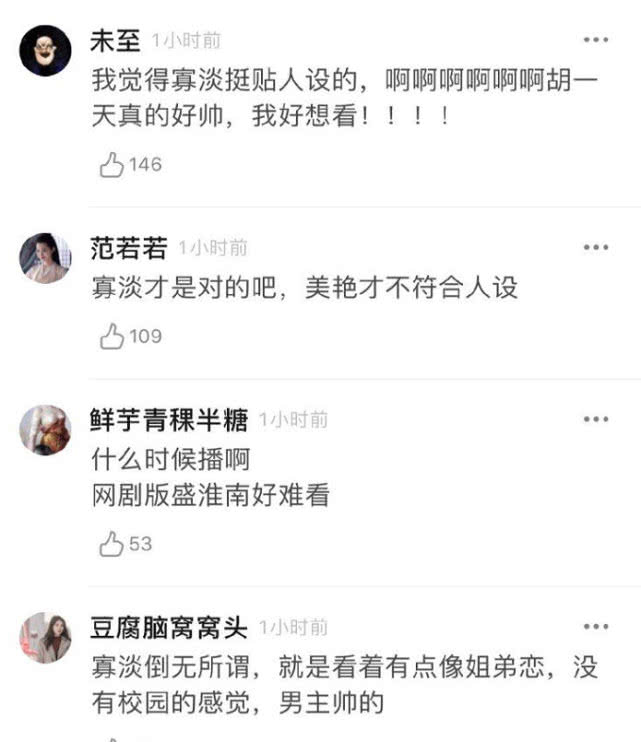 其次,胡冰卿和胡一天的颜值还是挺般配的,就是被一些网友说是像姐弟恋,不知道从何而来?总而言之,网剧版的已经扑了,现在大家都把希望寄托在了剧版,希望剧版的《暗恋橘生淮南》能够不让大家失望吧。如果这一次胡冰卿依然得不到关注,她可能得考虑要转型了。