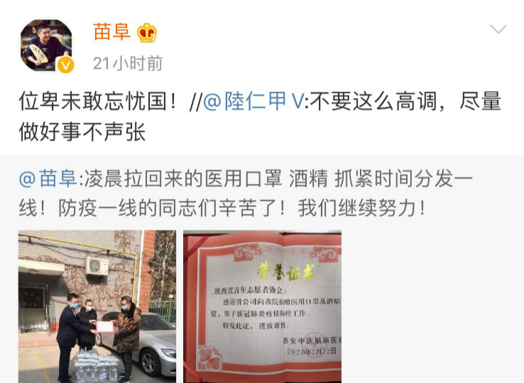 对此,一些网友和粉丝也纷纷认为苗阜太难了:不发出来吧,说你没做公益;发出来吧,又说你太高调!