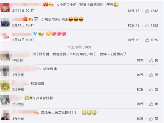 就算是有颗炫娃的心,郭德纲也很少在网上晒过俩儿子的日常。或者这次也是因为春节期间在一起的时间太久,14号原本是情人节,郭德纲却很罕见的在网上晒俩儿子的合影,合影里的郭德纲抱着弟弟,画面也是各种的亲密和温馨。看得出兄弟俩的感情很好,粉丝们也是很难看见郭德纲视角晒娃,也是跟着各种的激动。
