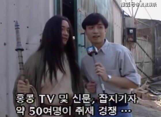 不仅仅算是有了一屋子的神仙人物在打架,尤其是在记者堆里,我们还找到了当年做主持的古巨基。当年的他真的很年轻,而且还采访了张国荣。当时的张国荣拿着佩剑,面带笑容的接受他的采访,一看就知道他们比较熟啦。