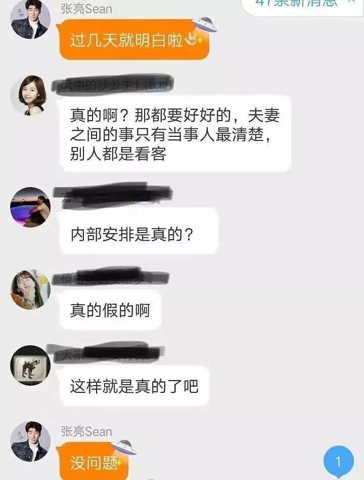 而张亮在发完离婚声明后,又在自己的粉丝群里说:“只是家庭内部的安排,过几天就没事了,请大家放心!”
