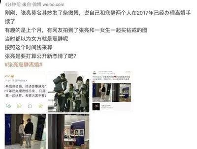 张亮在公布离婚的文案中说,自己跟寇静早在2017年就离婚了。