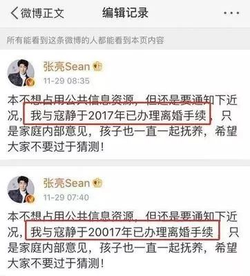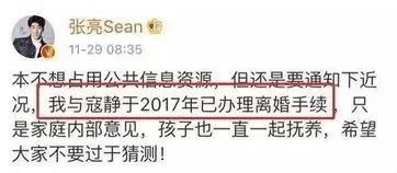 第三天,11月29日,张亮就在微博高调宣布,跟自己的妻子寇静,离婚了。