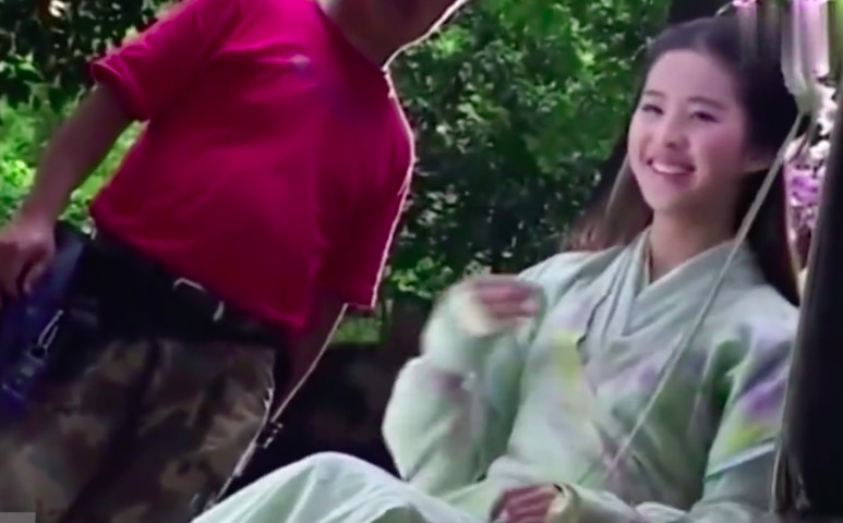 下一个镜头是赵灵儿开心地等到李逍遥回来找她,从现场的镜头和布置可以看出,胡歌并没有在现场,刘亦菲完全是对着空气表演,但是这似乎丝毫没有难倒刘亦菲,几乎完美地表演出了少女等到心上人归来的雀跃。