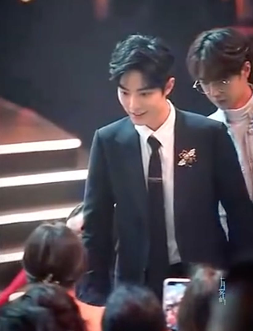 肖战领完奖下台后,并没有直接坐回座位,而是走到郑爽的旁边,麻烦她帮忙拿一下保温杯。穿着抹胸裙的郑爽也很热心,哪怕不是那么方便也帮了这个忙。
