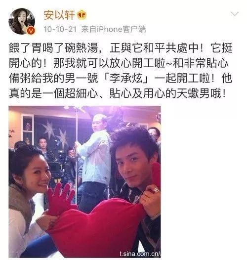 不过安以轩微博中最后一次提到李承铉是在12年中旬。