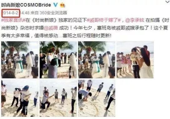 可以判断出,两人在11年就已经确定了恋爱关系,而在11年之后戚薇开始逐渐走红了,等到13年的时候两人甚至还被传出要去美国办理结婚的消息。