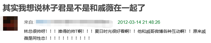 林子君和戚薇之间的瓜,大概要从12年吃起。(从那时候开始,就有网友发现了两人关系密切的帖子出现)