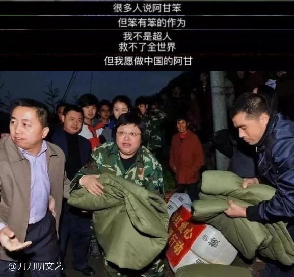 “很多人说阿甘笨,但笨有笨的作为,我不是超人,救不了全世界,但我愿意做中国的阿甘。”
