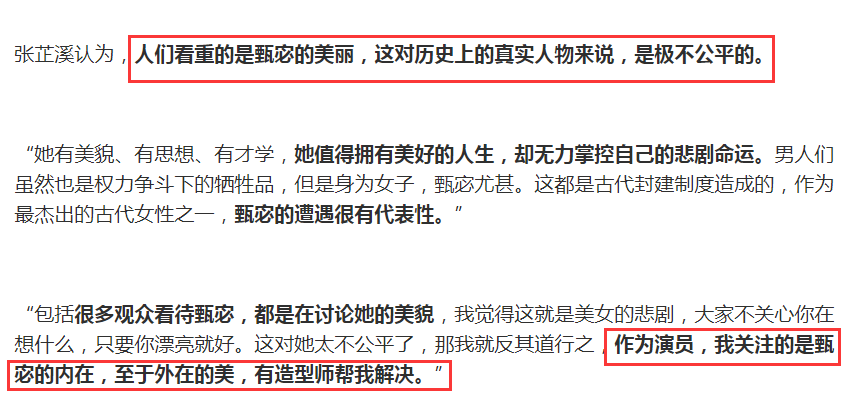 此外她还认为,世人谈论甄宓总是用“美”一语概括,其实对甄宓本人是不公平的,过于关注她的外在,而忽略了她的才华与品性。小8有点好奇,她的这番话是在为“甄宓”鸣不平,是否也代入了一点自己的感受呢?