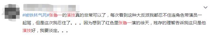 也有的观众跳出戏外观赏起两位老戏骨的演技,觉得"铁林"能让观众气得牙痒痒,正说明张鲁一演技绝佳,把角色演活了。