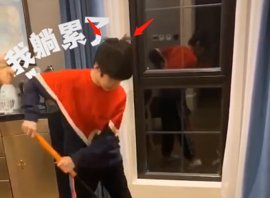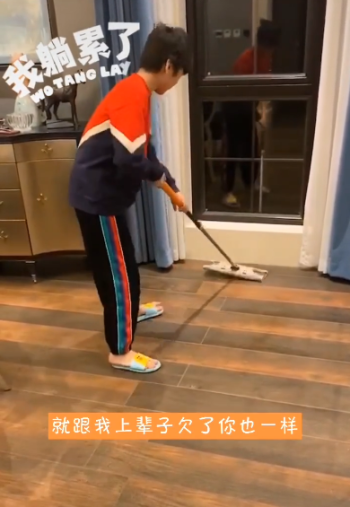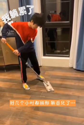 视频中,天天嘴里不断吐槽着爸爸张亮宅在家里的行为,他说道:“什么也不知道干,吃了睡,睡了吃。”但手中也没有停下正在拖地的动作,干起活来非常熟练。