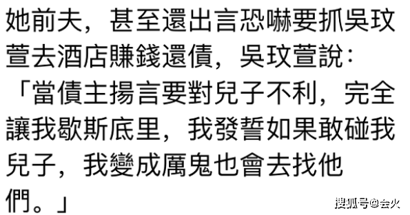 不仅如此,吴玟萱和儿子还时常受到债主的威胁恐吓。但为了儿子,吴玟萱一直都十分坚强,是一位伟大的母亲。