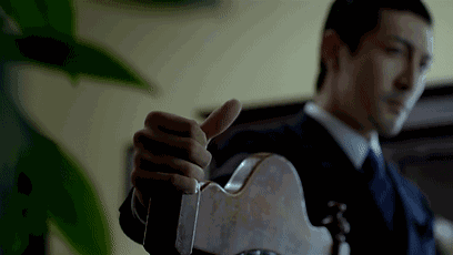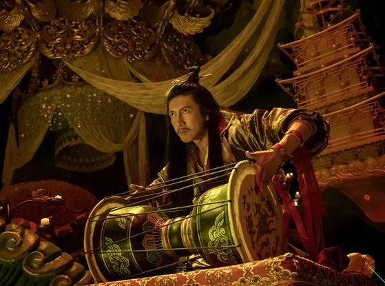而《妖猫传》里的唐玄宗,一段打鼓戏,眼神和手部动作看的人头皮发麻,眼神从未盯在鼓上,而是直视前方,是盛世帝王之气,又写满显而易见的欲望。