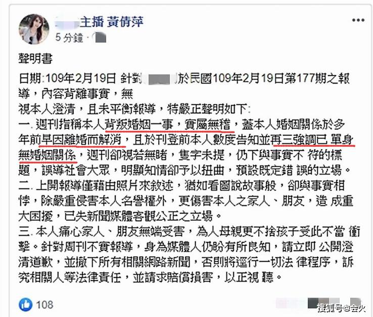 黄倩萍也在自己的社交平台中澄清,表示自己并未出轨,还强调自己是“已单身无婚姻关系”的身份。
