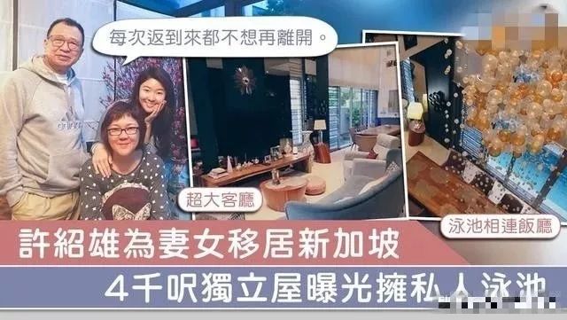 为了和妻女在新加坡的新生活,许绍雄还豪掷千金买了一座4千尺独栋豪宅,这座豪宅据悉价值2千万,不仅占地面积广,有一个超大的客厅,更特别的还有一个横跨整个客厅的私人游泳池。