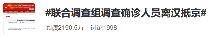 #联合调查组调查确诊人员离汉抵京#成为27日热点话题。