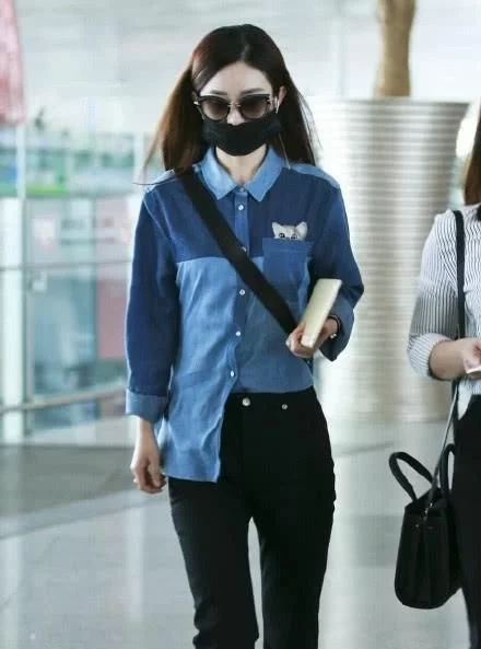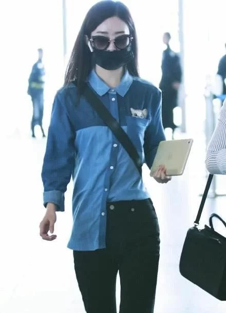 同样的衬衫,但赵丽颖穿上这件普通的衬衫比那件充满设计感的"蝙蝠裙"要好看不少。随意一件拼接衬衫搭配一条黑色修身直筒裤,既显年轻又显瘦时尚。赵丽颖选择的这件衬衫不是那种宽大大大的,所以和裤子搭配在一起很显瘦,不会手下留情。