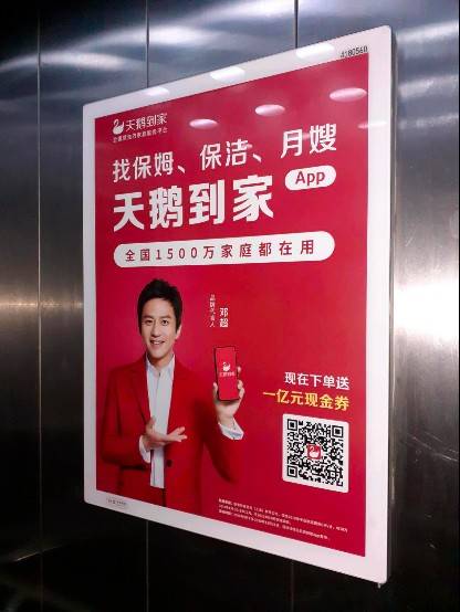 同样,在《天鹅到家》短短15秒的电梯广告中,邓超在天鹅到家时强调了“品牌名称变更”、“平台价值”和“优惠福利”的品牌信息,以吸引人的“公告体”和拍摄手法打动了人们,强化了用户的品牌意识。