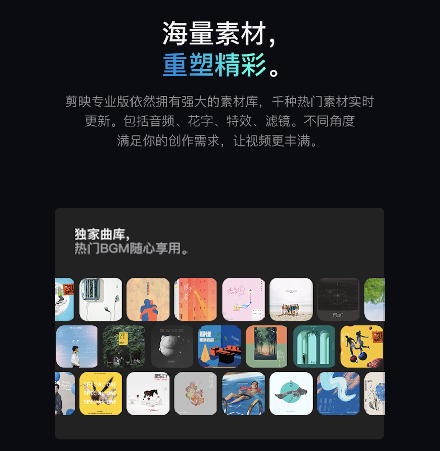 相比移动版,剪映专业版方便用户创作更多中长视频。同时,剪映专业版也延续了移动版简单易用的特点,迁移了“同步抖音收藏音乐”等基础功能。