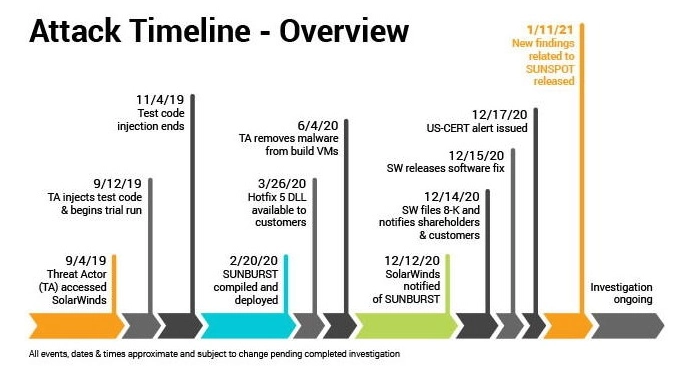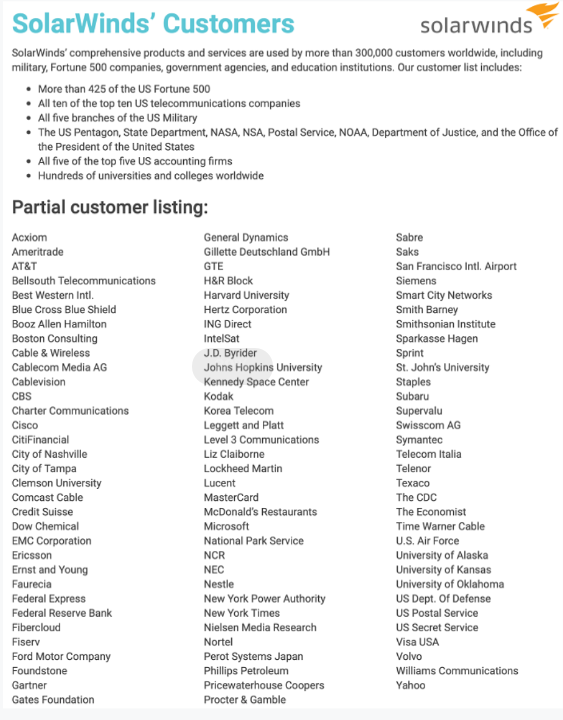 FireEye 指出,去年 12 月,拥有复杂背景的黑客组织成功利用了 SolarWinds 的软件漏洞,渗透了多达 1.8 万名客户的内部网络,其中就包括 FireEye 和微软。