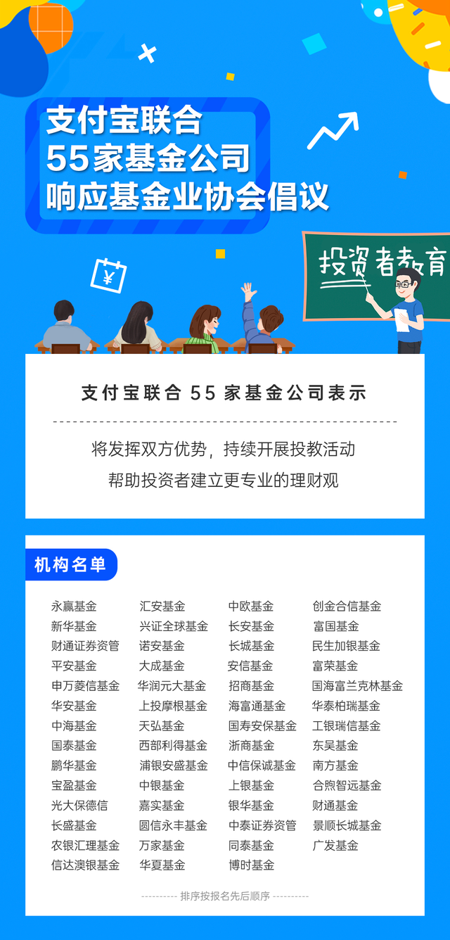 截至今日上午10点,支付宝联合华夏、中欧、南方、诺安等在内的55家基金公司率先响应了这一倡议。
