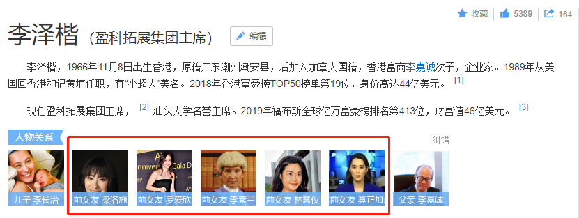 54岁的李泽楷,2018年福布斯身家340亿港币,可多年来一直保持只恋爱不结婚的习惯,网上随便搜搜他的资料,也能顺势给列出众多前女友一排。